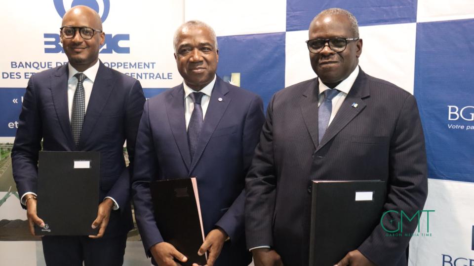 Afrique54.net │ C’est le siège de la BGFIBank Gabon sis au Boulevard du bord de mer, qui a servi de cadre pour la cérémonie de signature d’une convention de prêt entre la BDEAC et Afrijet, via la BGFIBank Gabon. Cela a valu la présence du président de la BDEAC Dieudonné Evou Mekou, de l’Administrateur Directeur Général de BGFIBank, Loukoumanou Waidi et du Directeur Général Adjoint d’Afrijet, Nyl Moret-Mba, qui ont tous les trois paraphé cette convention de prêt.