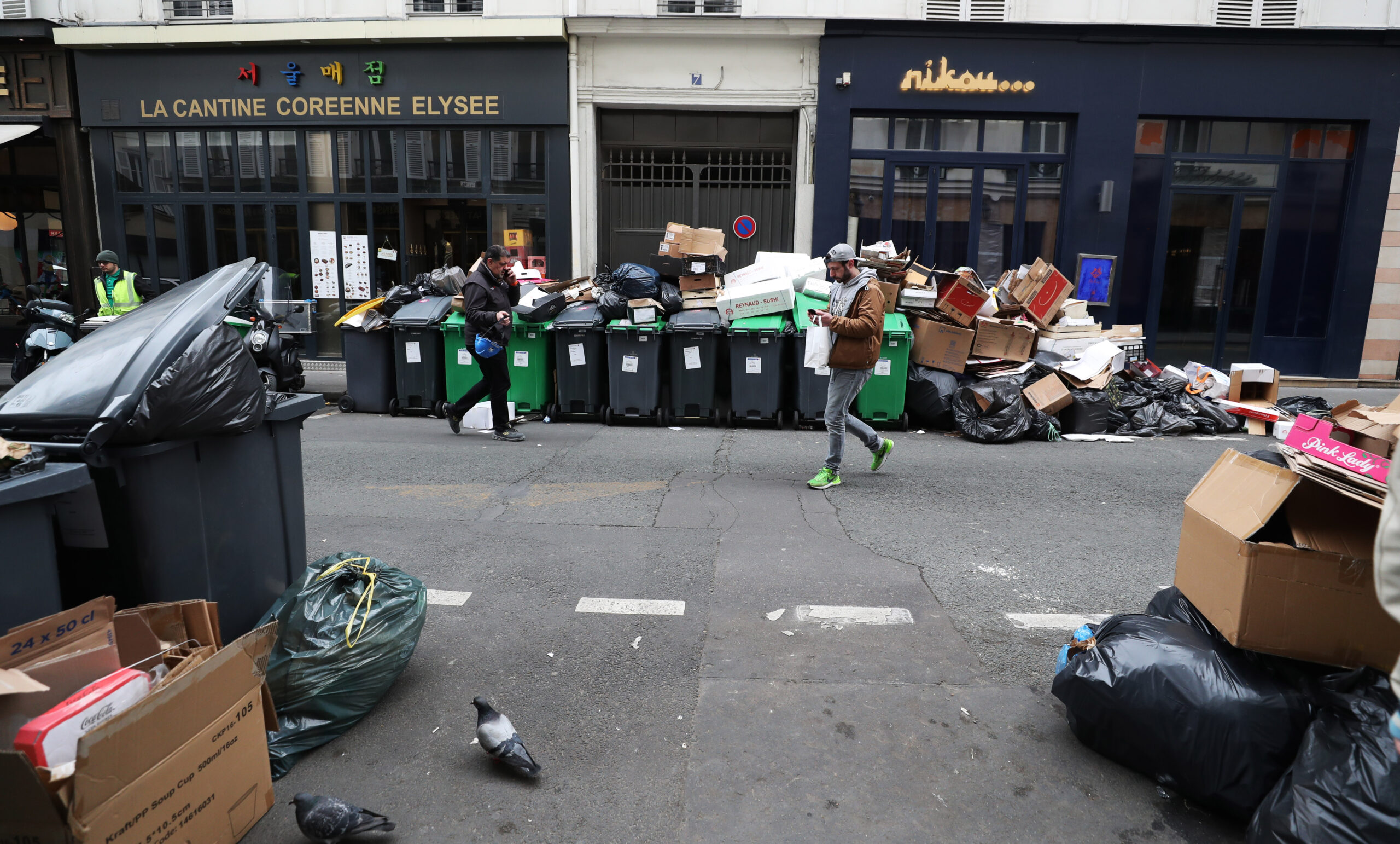 A Paris, certains arrondissements restent desservis par les camions-poubelles, car la collecte des déchets dans la moitié des arrondissements de Paris est effectuée par des agents municipaux grévistes, tandis que dans les dix autres arrondissements, quatre entreprises privées se partagent la tâche.