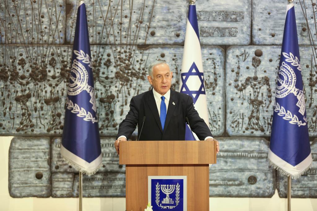 Benjamin Nétanyahou donne un discours avant de recevoir le mandat du président israélien Isaac Herzog pour former un nouveau gouvernement à la présidence à Jérusalem, le 13 novembre 2022. (Xinhua/Wang Zhuolun)
