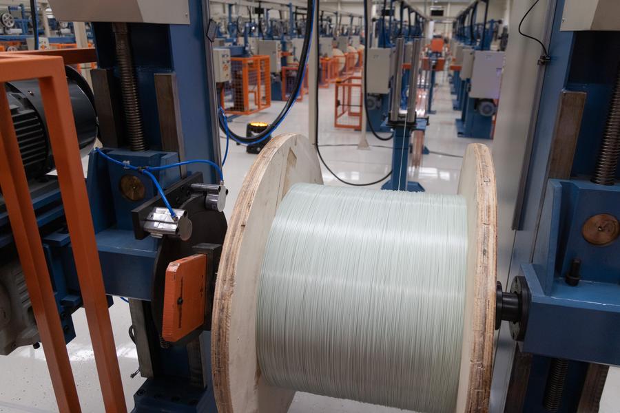 ►►Une photo prise le 10 mars 2025 montrant une ligne de production à l’usine Zettanet à Kisber, en Hongrie. Une nouvelle étape dans la coopération économique sino-hongroise a été célébrée avec l’ouverture officielle de cette entreprise de fabrication de câbles optiques nouvellement établie à Kisber lundi. L’investissement, soutenu par le géant chinois des télécommunications FiberHome, devrait améliorer les capacités industrielles de la Hongrie et renforcer les relations économiques bilatérales.