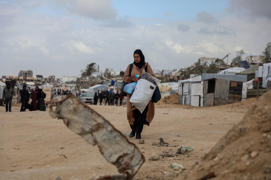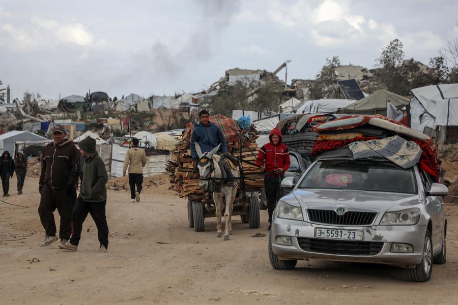 ►►Des Palestiniens forcés de fuir la ville de Beit Lahia, dans le nord de la bande de Gaza, sont vus dans la ville de Gaza, le 20 mars 2025.