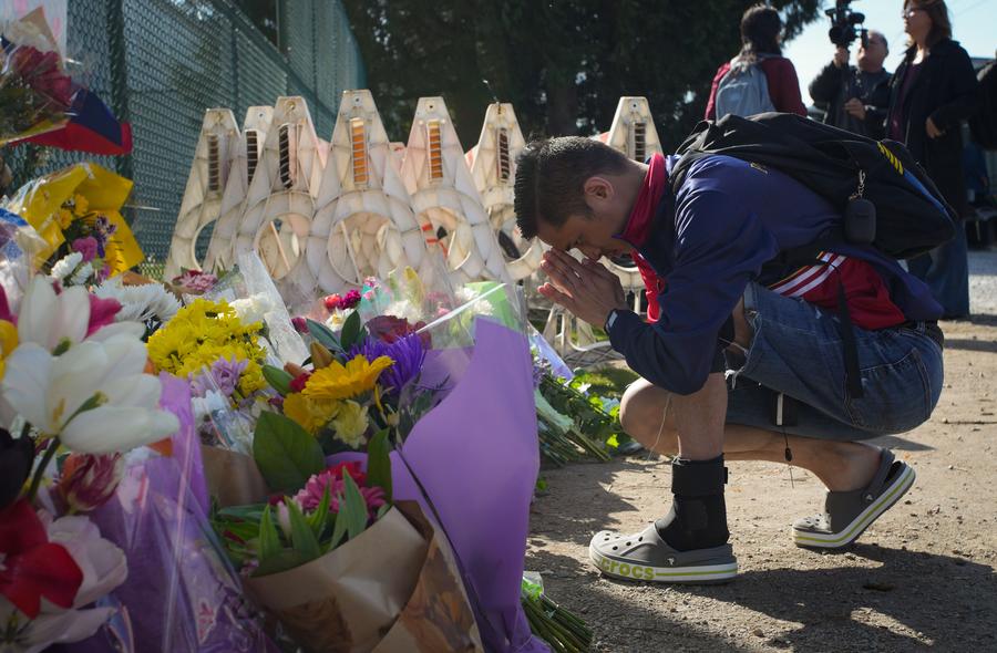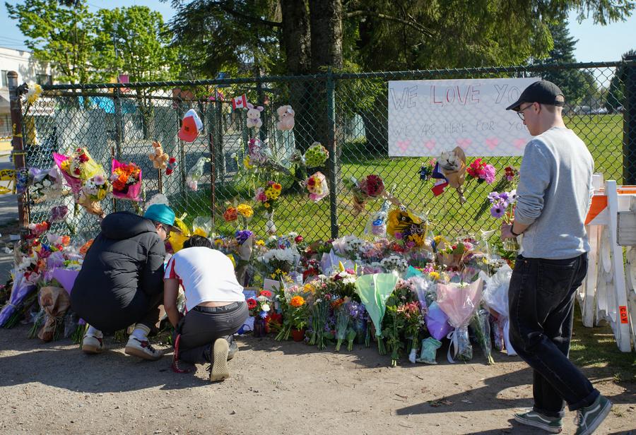 ►►Un homme prie près du site d’une attaque à la voiture-bélier à Vancouver, en Colombie-Britannique, au Canada, le 27 avril 2025. Onze personnes ont été confirmées mortes après qu’une voiture a foncé samedi soir dans la foule lors d’un festival de rue à Vancouver, au Canada, selon la police.