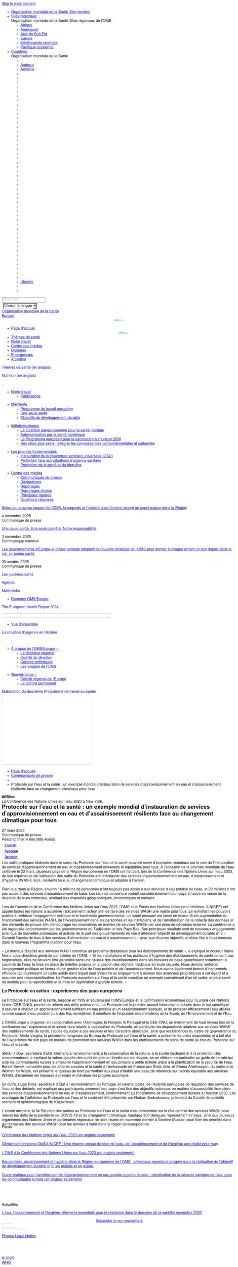 Le Protocole sur l’eau et la santé est un instrument juridique multilatéral soutenu conjointement par l’OMS/Europe et la CEE-ONU, la Hongrie en assurant actuellement la présidence. Depuis son adoption en 1999 et son entrée en vigueur en 2005, les travaux menés dans le cadre du Protocole ont contribué à faire avancer les programmes relatifs à l’eau, à l’assainissement, à l’hygiène et à la santé au niveau régional, tout en permettant aux pays de la région paneuropéenne de progresser dans la réalisation des objectifs mondiaux et régionaux correspondants. La Réunion des Parties au Protocole se tient tous les 3 ans. Bon à savoir, la septième prend fin le 07 novembre.