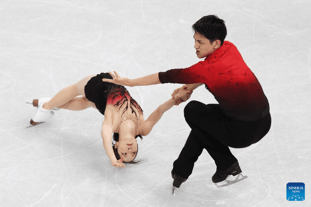 ►►Ellie Kam (R)/Danny O’Shea of the United States compete during the figure skating team event pair skating short program of the Milan-Cortina 2026 Olympic Winter Games in Milan, Italy, Feb. 6, 2026.