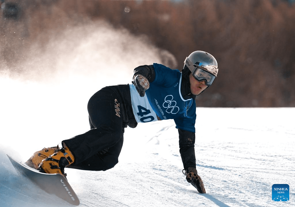 ►►Ban Xuefu of China competes during the Snowboard Men’s Parallel Giant Slalom Qualification at the Milan-Cortina 2026 Olympic Winter Games in Livigno, Italy, Feb. 8, 2026.
