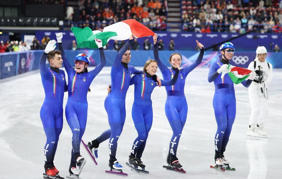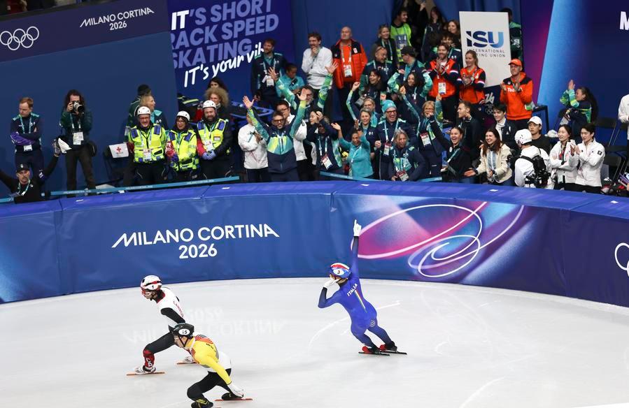 ►►After host nation Italy won the short track speed skating mixed team relay gold at the 2026 Winter Olympics on Tuesday, the Milano Ice Skating Arena erupted into cheers.