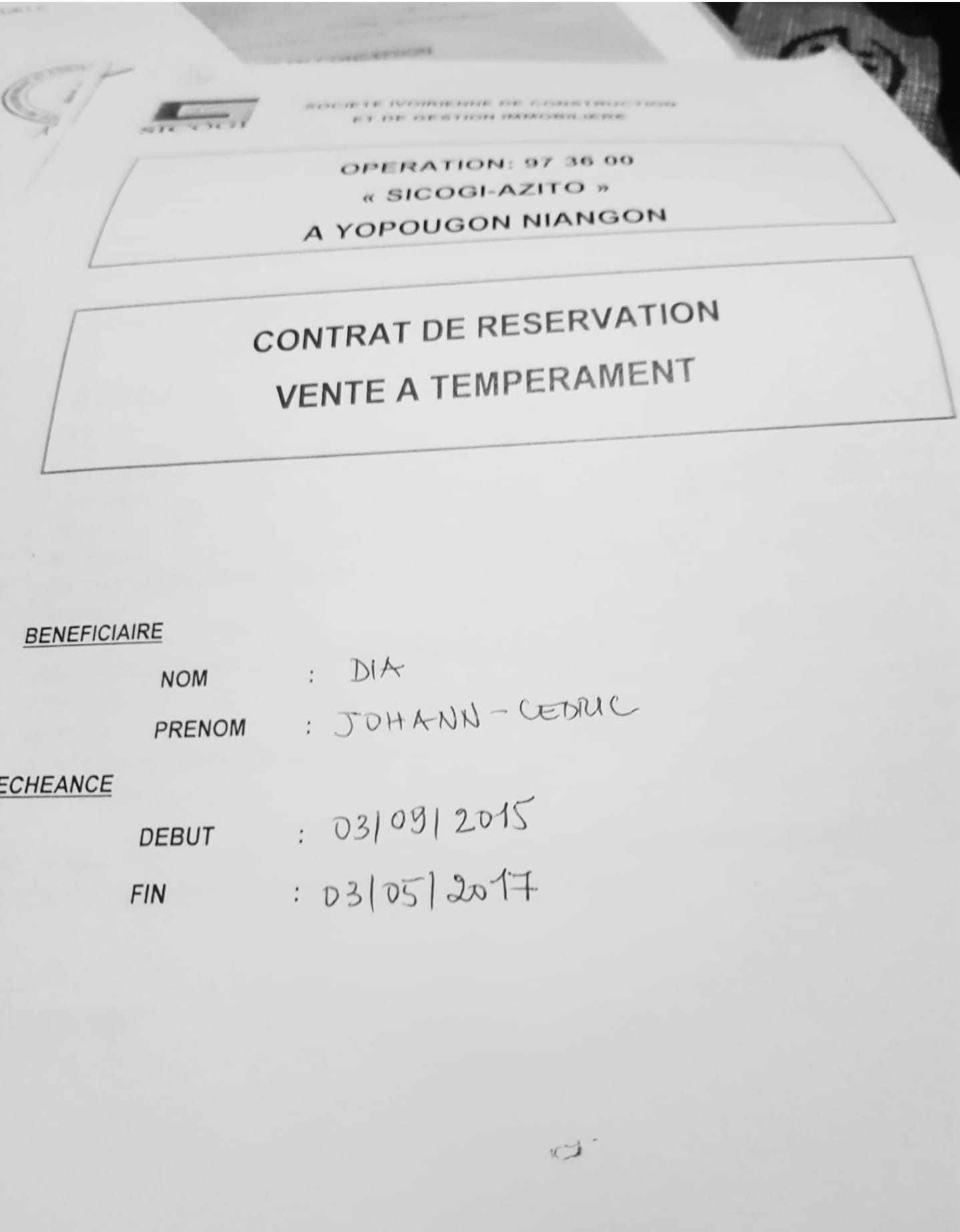 Afrique54.net – En effet, M. Dia Johann Cedric, a souscrit à l’achat d’un appartement de T2 pour le programme d’Azito à Yopougon, auprès de la Sicogi devenue l’Agence nationale de l’habitat (ANHA), pour un montant de 8.300.000 FCFA.