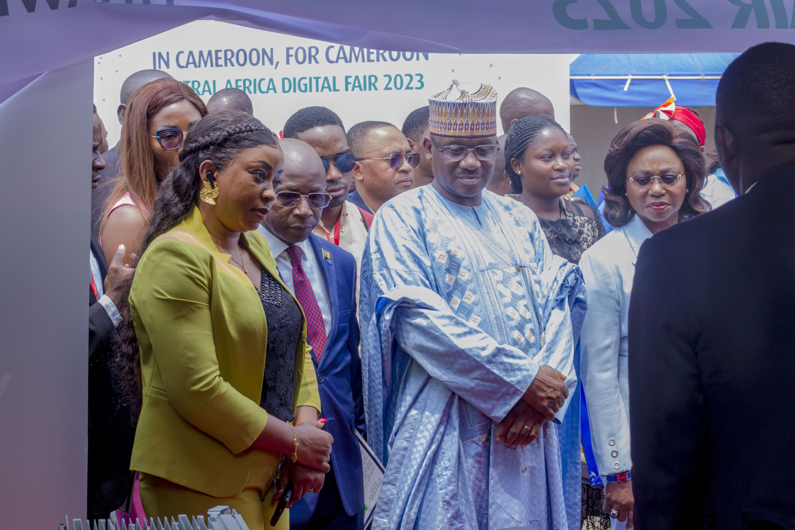 ► C’est par la voix du secrétaire général du ministère des Postes et Télécommunications, Mohamadou Saoudi que le mérite de l’entreprise Huawei a été reconnu lors de sa visite du stand du leader mondial des télécommunications en compagnie du Directeur Général de la CAMTEL, Mme Judith ACHIDI et du Représentant permanent de l’IUT des zones Afrique centrale et Madagascar.